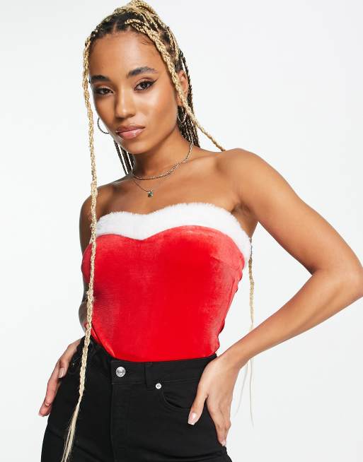 Threadbare – Jul – Röd body med bandeau-ringning i tomtestil