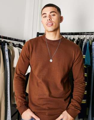 Threadbare – Kastanjebrun bomullströja med rund halsringning