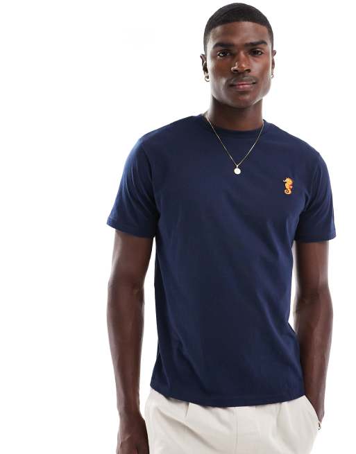 Threadbare – Marinblå t-shirt med broderad sjöhäst