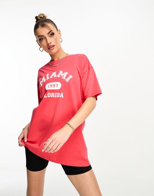 Threadbare – Rött set med shorts och t-shirt i oversize med Miami-text