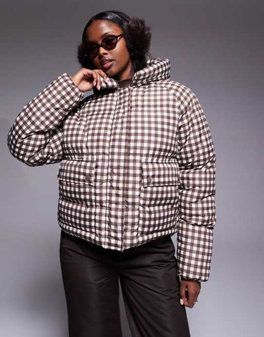 Threadbare – Skidåkning – Brun, rutig pufferkappa med huva