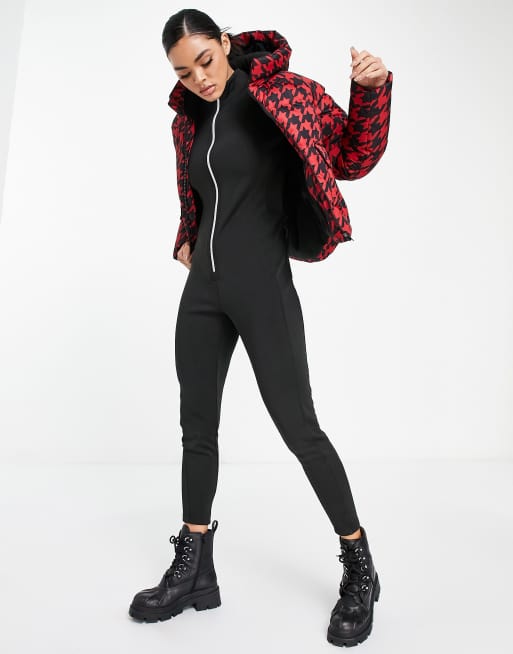 Threadbare – Skidåkning – Röd, hundtandsmönstrad pufferjacka