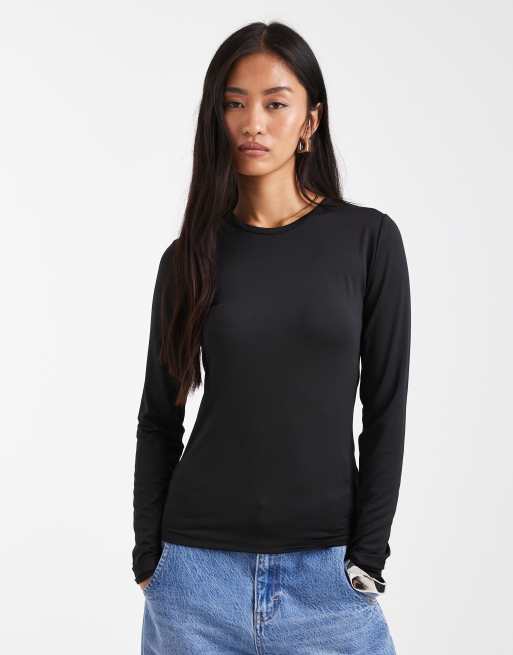 Threadbare – Svart, långärmad topp i jersey med rund krage