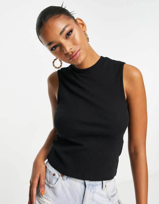 Threadbare – Svart ribbad crop top med hög ringning