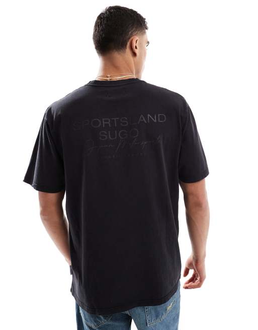 Threadbare – Svart t-shirt med rund halsringning och tryck baktill i jersey med hög andel bomull, 220gsm