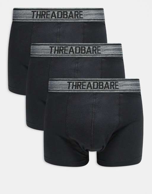 Threadbare – Svarta hipsterkalsonger med logga på midjebandet, 3-pack