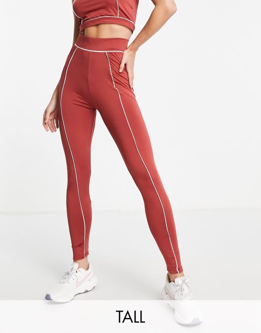 Threadbare Tall – Fitness – Roströda träningsleggings med kontrastsömmar, del av set