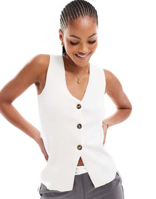 Threadbare – Tall – Gräddvit, stickad kostymväst