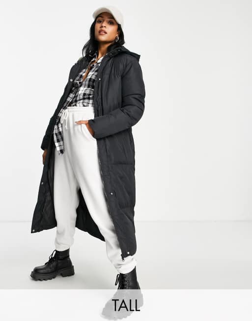Threadbare Tall – Jodie – Svart puffekappa i maxilängd