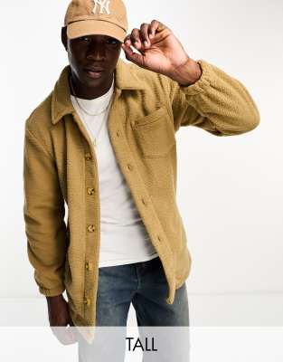 Threadbare Tall – Ljusbrun skjortjacka i teddy med knäppning