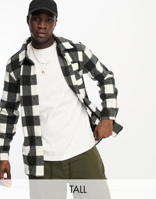 Threadbare Tall – Svar rutig skjortjacka med teddyfoder och knäppning