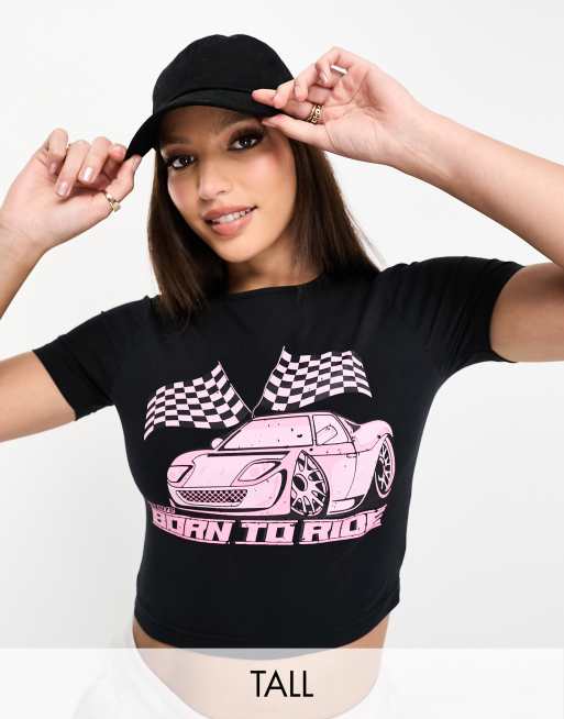 Threadbare Tall – Svart, liten T-shirt med tryck