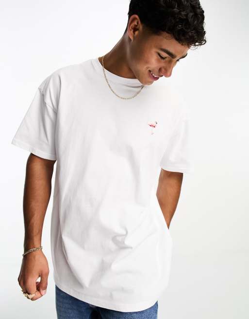Threadbare – Vit oversize t-shirt med broderad flamingo