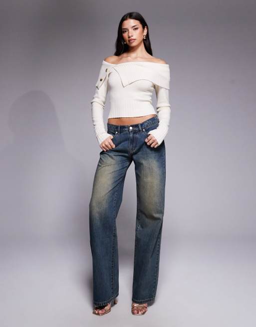 Tiger Mist – Luana – Mellanblå jeans med vida ben och medelhög midja