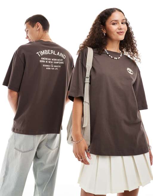 Timberland – Brun t-shirt i oversize med logga i arbetsstil - exklusivt hos ASOS