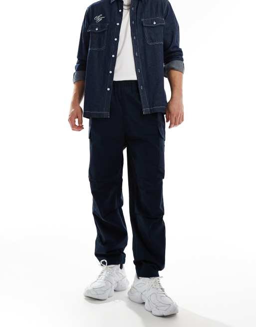 Timberland – Marinblå cargobyxor i ripstop med logga och normal passform