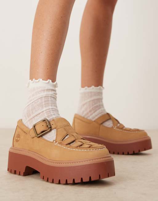 Timberland – Stone Street – Beige platåskor i nubuck och Mary Jane-stil