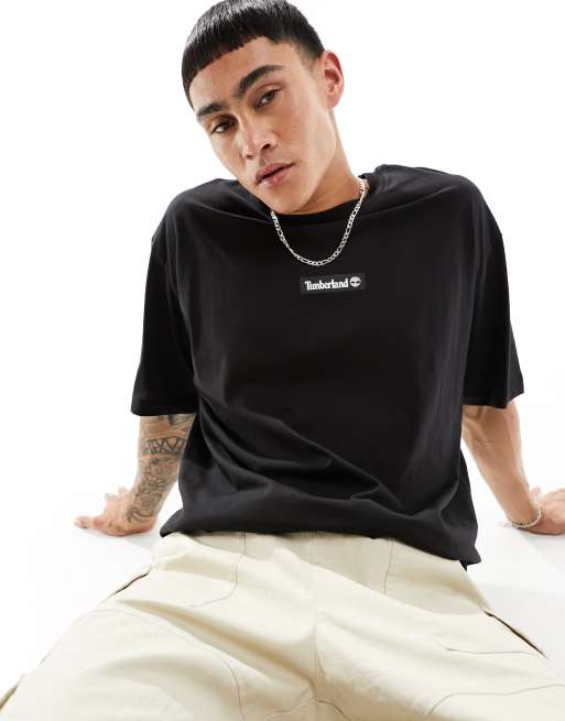 Timberland – Svart, oversize t-shirt med centrerad logga