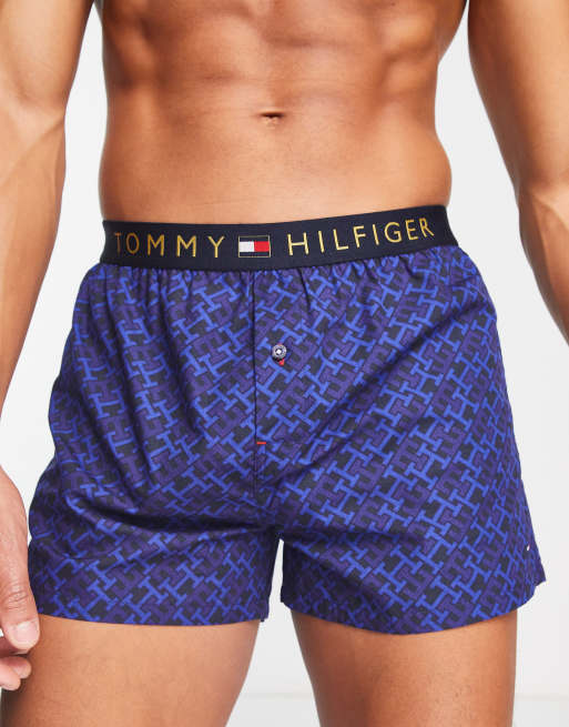 Tommy Hilfiger – Blå, vävda boxershorts med monogrammönster