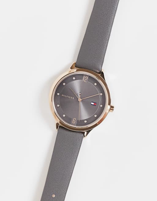 Tommy Hilfiger – Grå damklocka med läderarmband