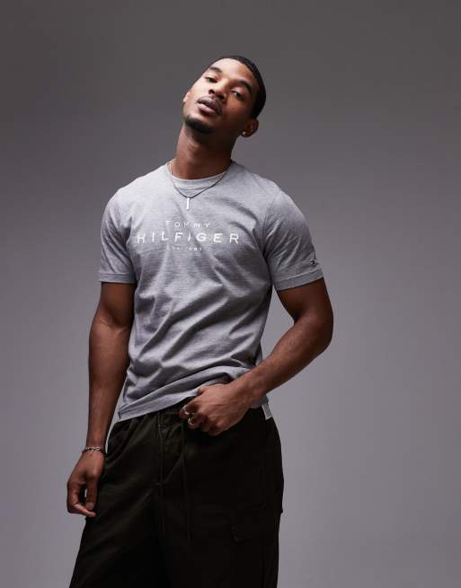 Tommy Hilfiger – Grå t-shirt med stor logga
