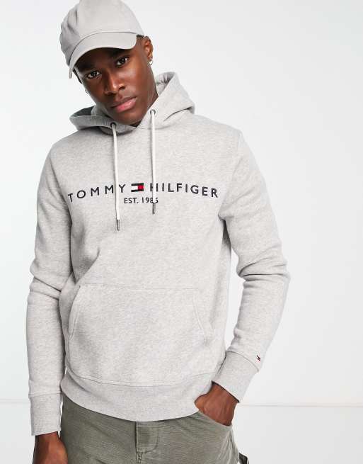 Tommy Hilfiger – Gråmelerad huvtröja med broderad logga