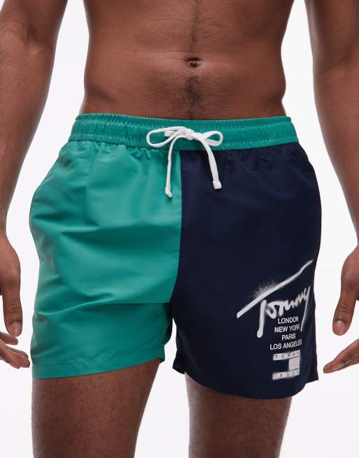Tommy Hilfiger – Gröna och marinblå badshorts med dragsko