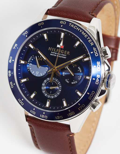 Tommy Hilfiger – Kronografklocka med brunt läderarmband