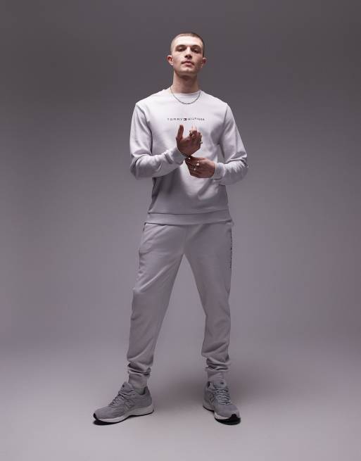 Tommy Hilfiger – Ljusgrå, mysiga mjukisbyxor med logga