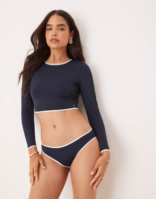 Tommy Hilfiger – Marinblå bikiniunderdel med vita kantband