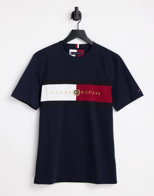 Tommy Hilfiger – Marinblå t-shirt med infälld flagglogga