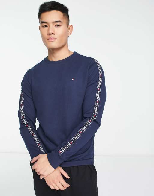 Tommy Hilfiger – Mörkblå, melerad myssweatshirt med tejpade logotypdetaljer i sidorna