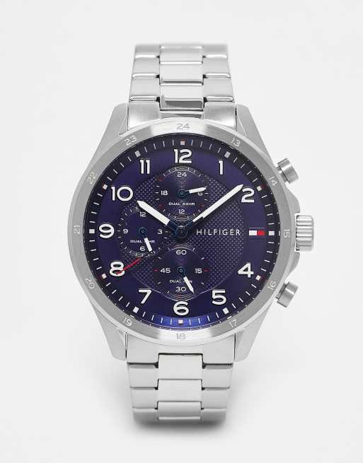 Tommy Hilfiger – Silverfärgad armbandsklocka för män med marinblå urtavla, 1792007