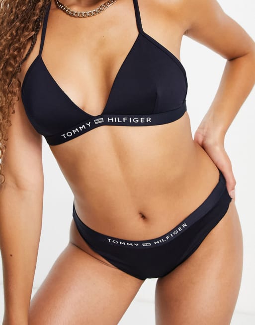 Tommy Hilfiger – Svart trekantsbikini med tejpad logga
