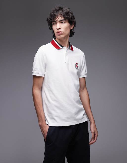 Tommy Hilfiger – Vit, fiskbensmönstrad, regular pikétröja med krage