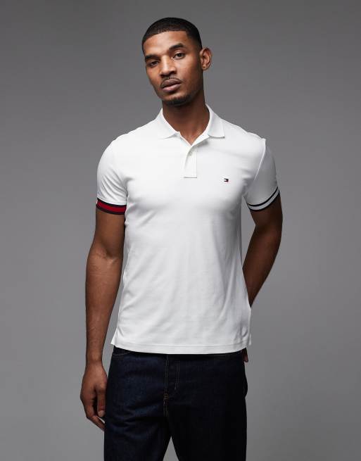 Tommy Hilfiger – Vit pikétröja med smal passform och muddar