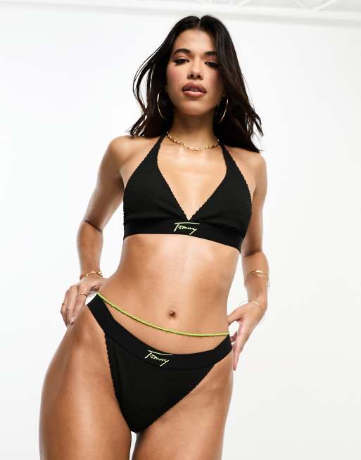 Tommy Jeans – Signature – Svart bikiniunderdel i cheeky-design med hög benskärning