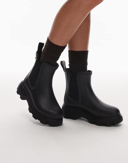 Tommy Hilfiger – Svarta gummistövlar med flagglogga och foder