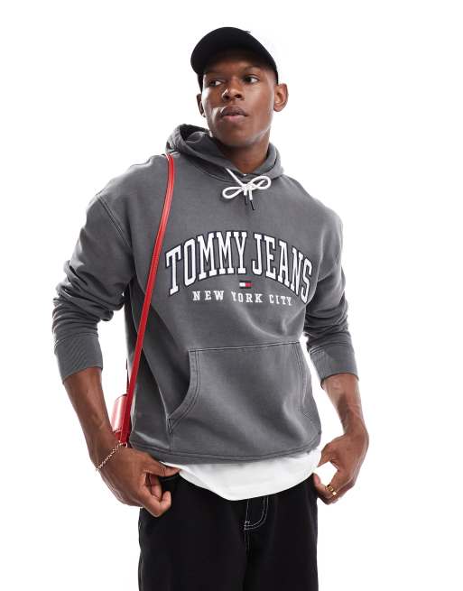 Tommy Jeans – Bleksvart hoodie med logga i collegestil