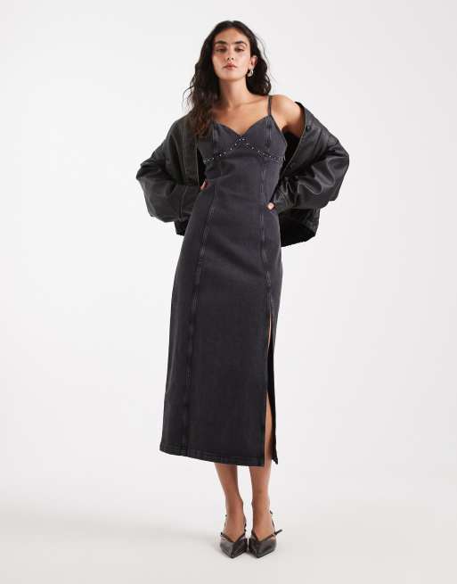 Tommy Jeans – Bleksvart jeansklänning i maxilängd med nitar