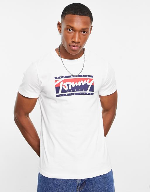 Tommy Jeans – Essential – Vit, smal t-shirt med skriftlogga