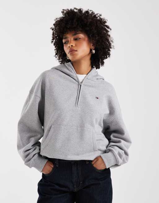 Tommy Jeans – Grå huvtröja med 1/4-lång dragkedja