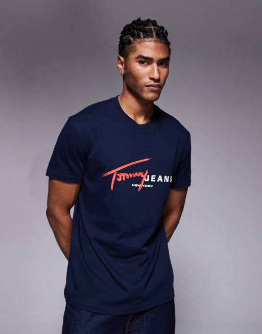 Tommy Jeans – Marinblå och röd t-shirt med signaturlogga