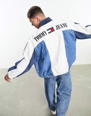 Tommy Jeans – Mellanblå, blockfärgad bomberjacka i denim