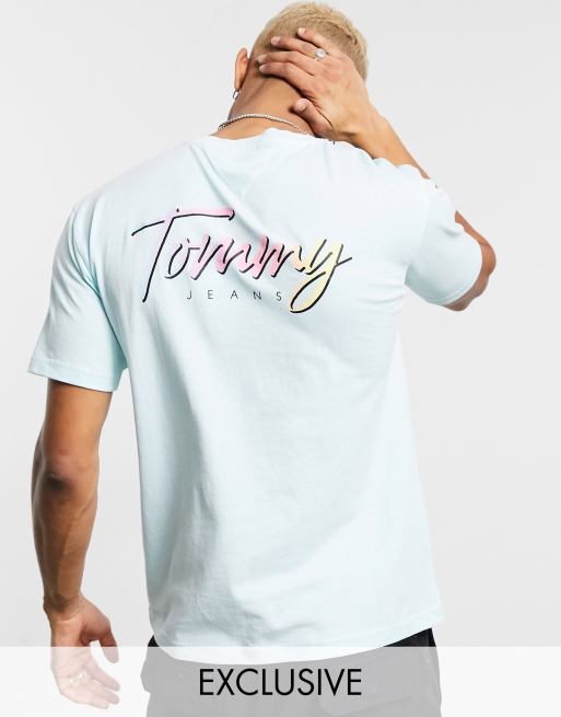 Tommy Jeans – Mintgrön t-shirt med avslappnad passform, flagglogga framtill och tryck baktill – Endast hos ASOS