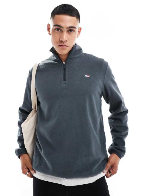 Tommy Jeans – Mörkgrå tröja i polarfleece med 1/4-lång dragkedja