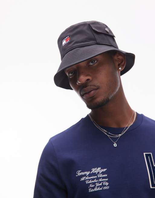Tommy Jeans – Svart fiskarhatt med flagglogga