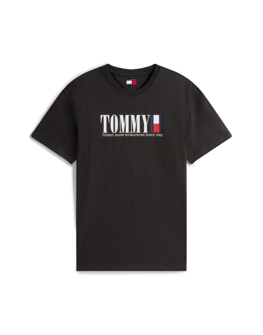 Tommy Jeans – Svart t-shirt med linjär flagglogga