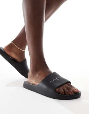 Tommy Jeans – Svarta badtofflor i PU med mönster