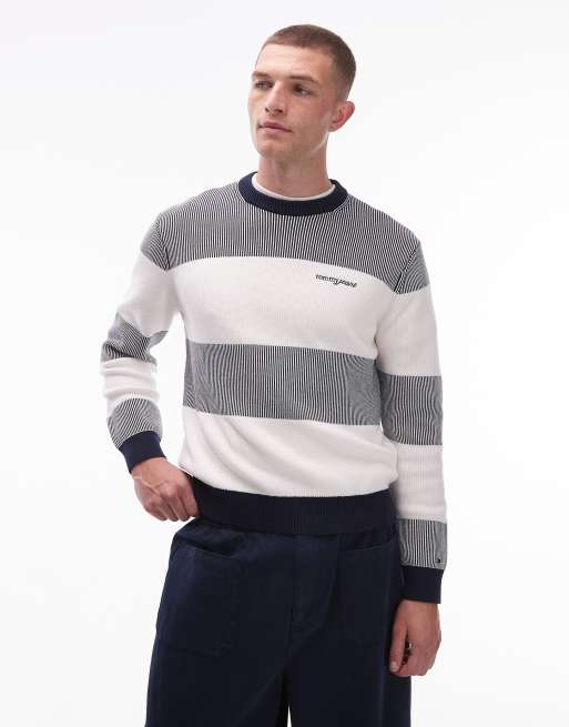 Tommy Jeans – Vit och grårandig tröja med våffeltextur